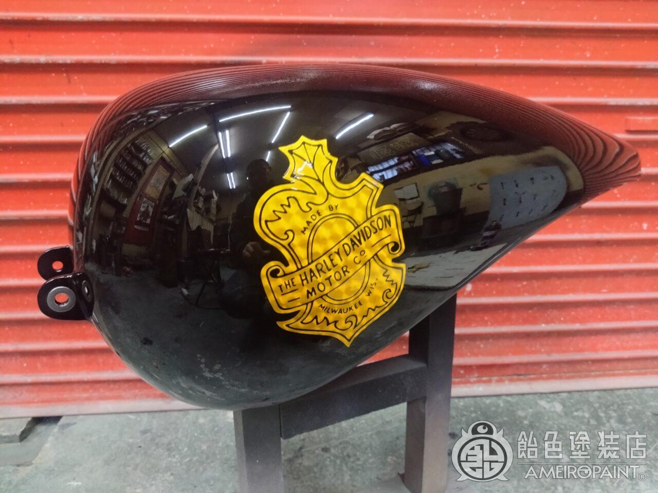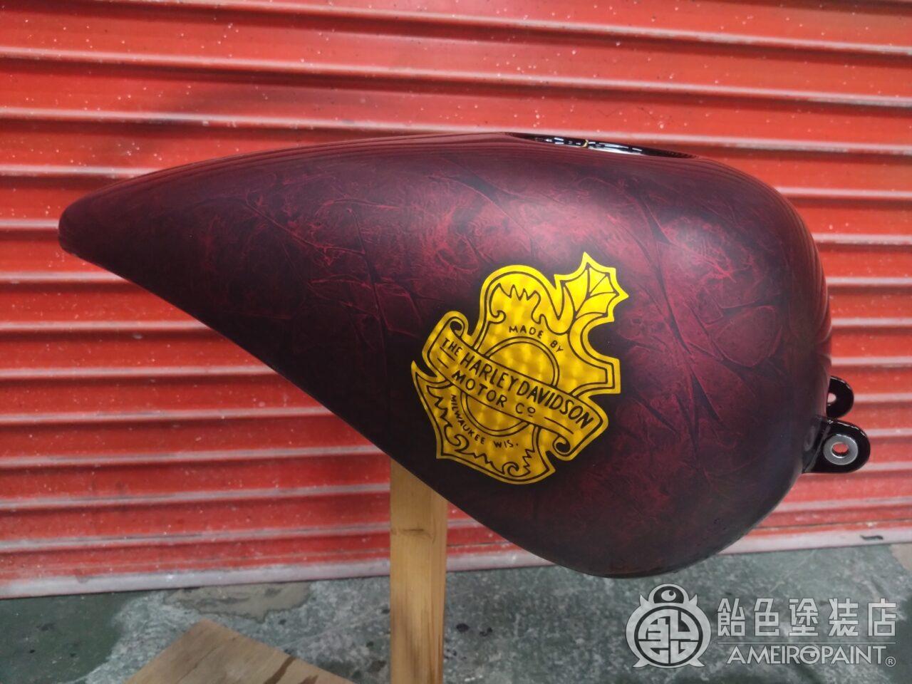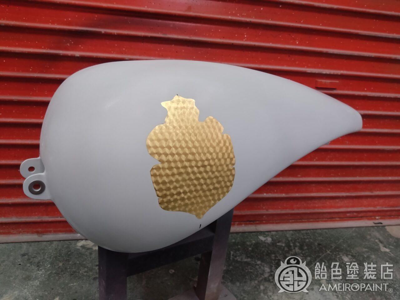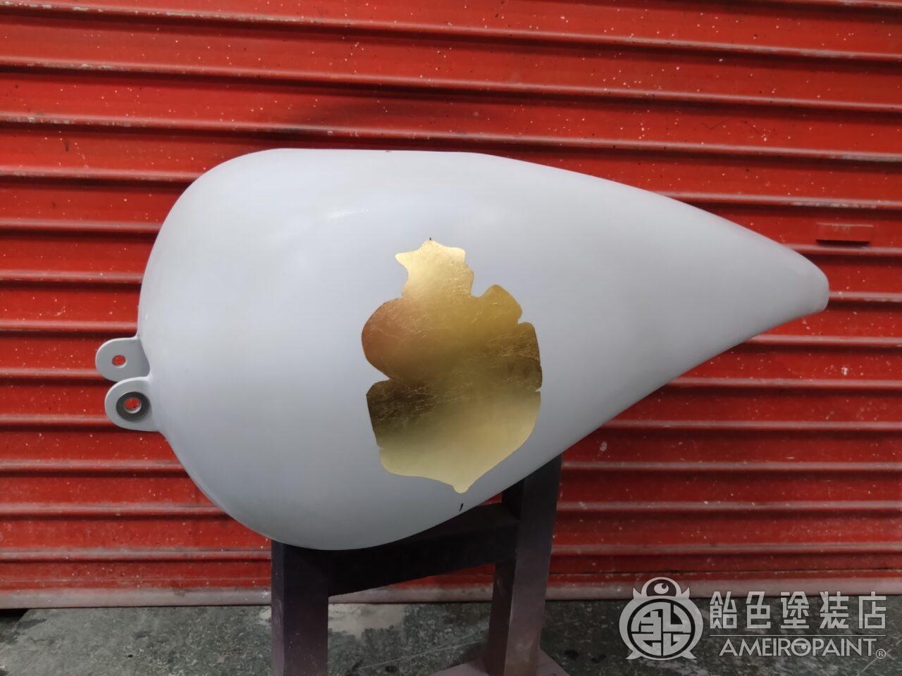 目次 ステー位置変更でリペイント。 13年ぶり3回目のリペイントです。 下地処理 流石に重ね塗りは限界なので完全剥離 面パテ プラサフ ゴールドリーフロゴ ゴールドリーフ スピニング ペーガンゴールド マスキング ソリッドブラック マスキング剥がし 抑えクリアー ラップペイント メタリック ウルトラミニフレーク吹いてブランデーワイン マスキング剥がし 段消しクリアー 肌落とし研き 完成 PAINT GALLERY M-180 ハーレー 98FXD タンク【ゴールドリーフ オークリーフ】 painted by SATORU HATANO ペイント工程 バイク Share Post Pin It Hatena Pocket LINE