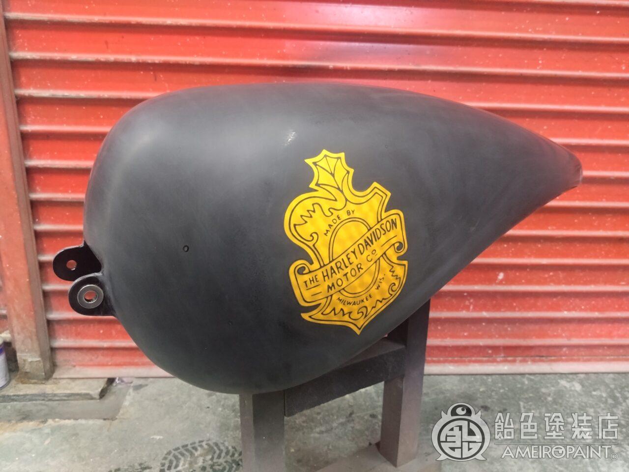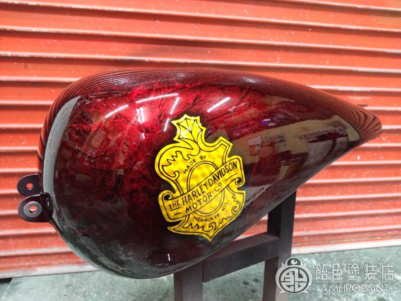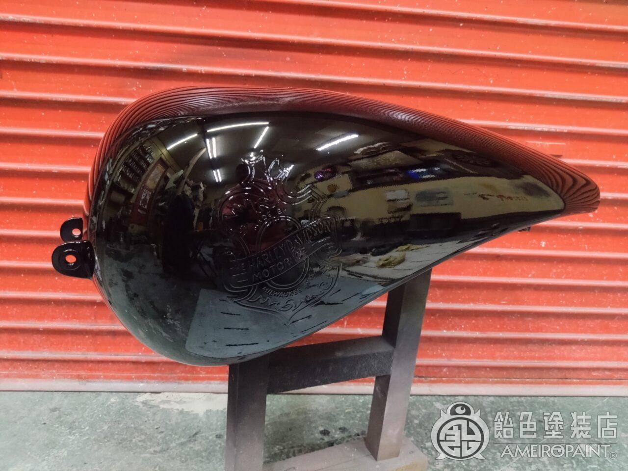 目次 ステー位置変更でリペイント。 13年ぶり3回目のリペイントです。 下地処理 流石に重ね塗りは限界なので完全剥離 面パテ プラサフ ゴールドリーフロゴ ゴールドリーフ スピニング ペーガンゴールド マスキング ソリッドブラック マスキング剥がし 抑えクリアー ラップペイント メタリック ウルトラミニフレーク吹いてブランデーワイン マスキング剥がし 段消しクリアー 肌落とし研き 完成 PAINT GALLERY M-180 ハーレー 98FXD タンク【ゴールドリーフ オークリーフ】 painted by SATORU HATANO ペイント工程 バイク Share Post Pin It Hatena Pocket LINE