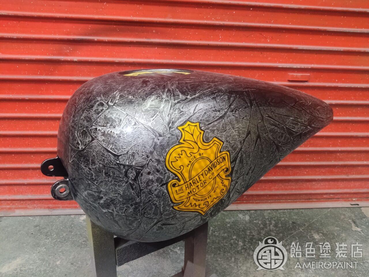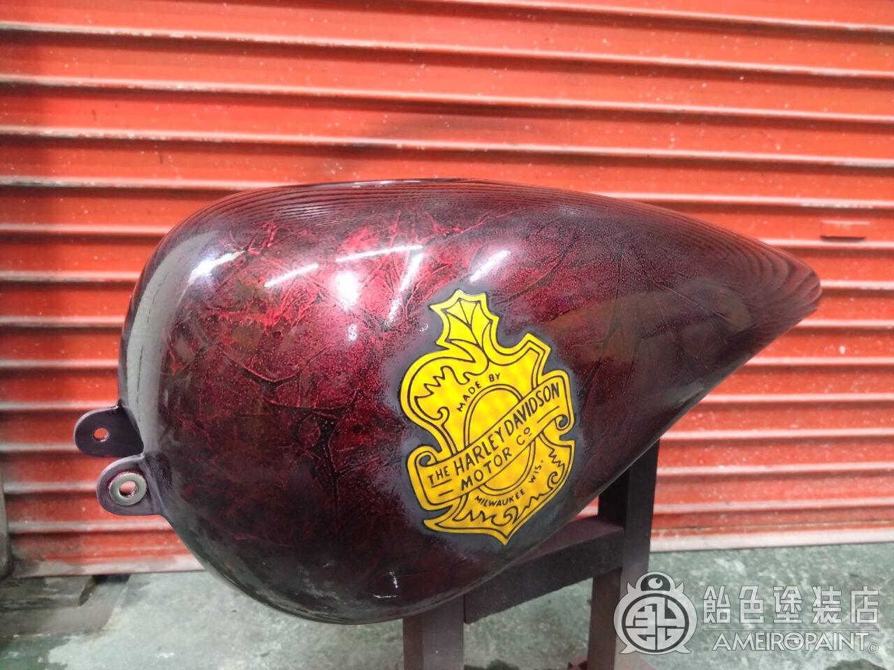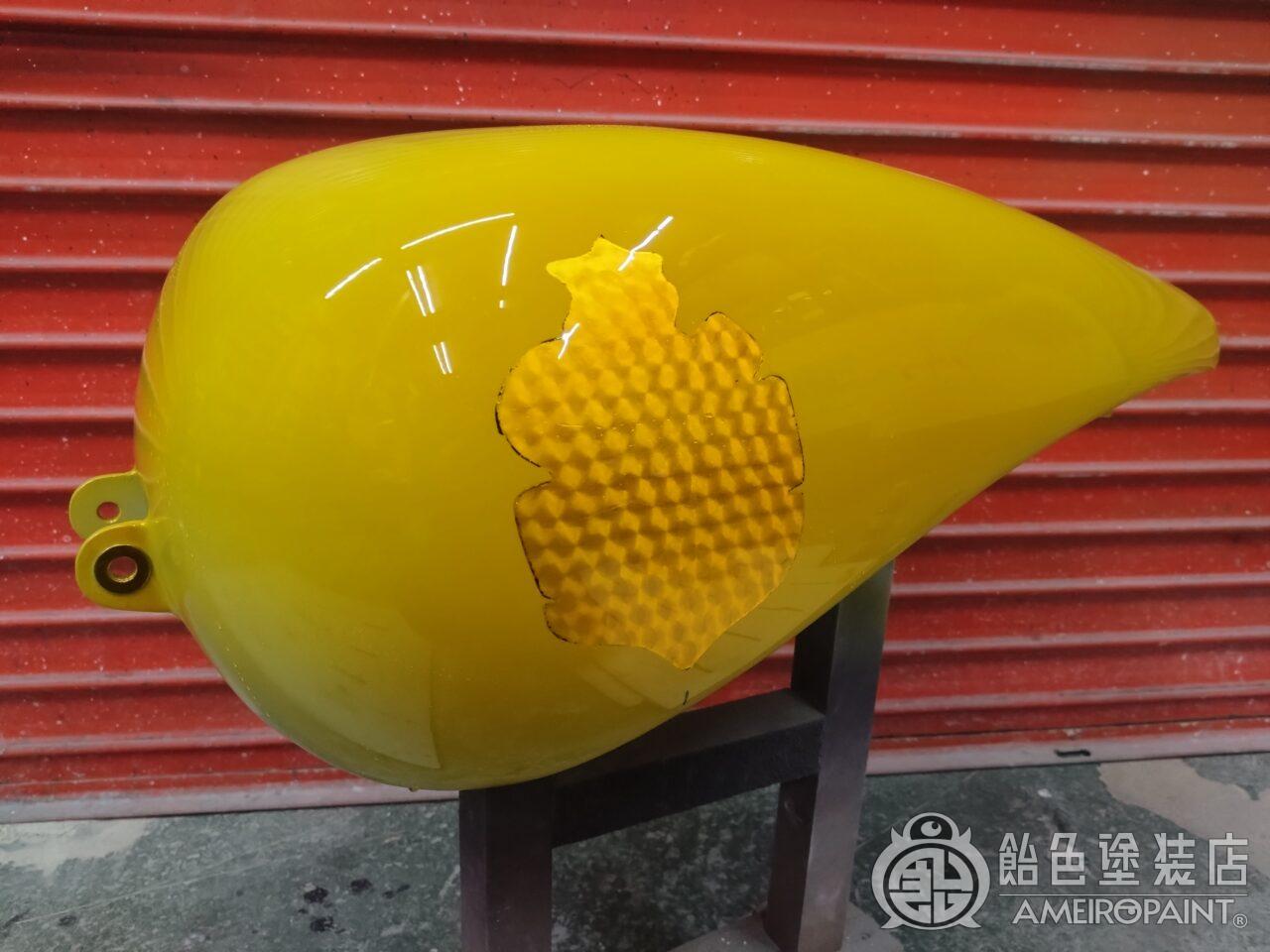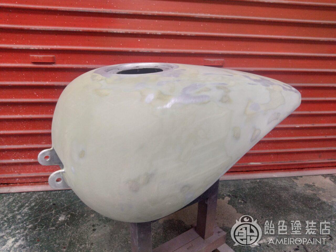 目次 ステー位置変更でリペイント。 13年ぶり3回目のリペイントです。 下地処理 流石に重ね塗りは限界なので完全剥離 面パテ プラサフ ゴールドリーフロゴ ゴールドリーフ スピニング ペーガンゴールド マスキング ソリッドブラック マスキング剥がし 抑えクリアー ラップペイント メタリック ウルトラミニフレーク吹いてブランデーワイン マスキング剥がし 段消しクリアー 肌落とし研き 完成 PAINT GALLERY M-180 ハーレー 98FXD タンク【ゴールドリーフ オークリーフ】 painted by SATORU HATANO ペイント工程 バイク Share Post Pin It Hatena Pocket LINE