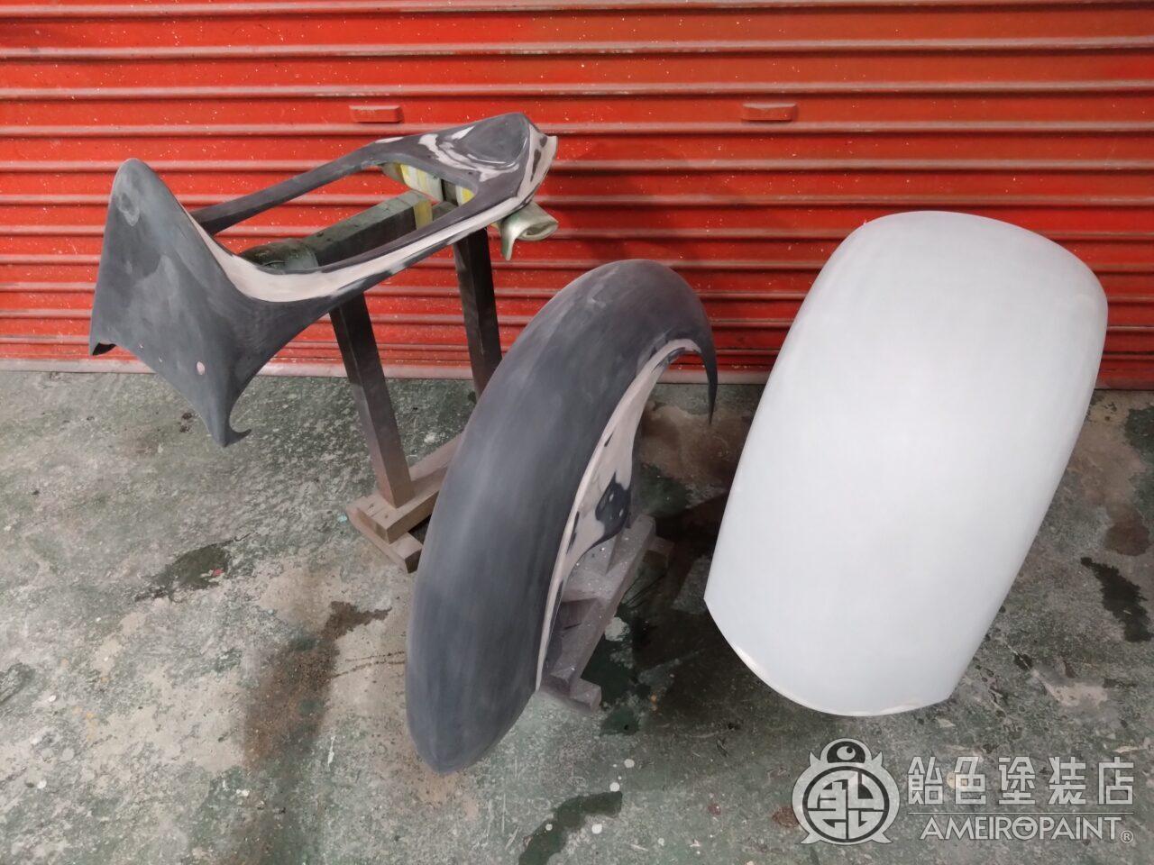 先行してエグリ加工されたタンクの下処理から。