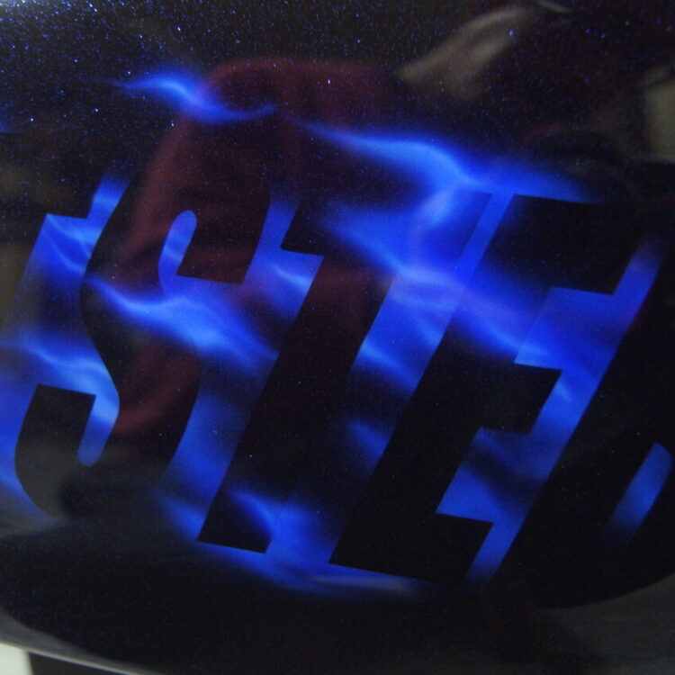 The logo is painted onto the factory-style double lines and then ghost painted to create a one-of-a-kind custom paint job.