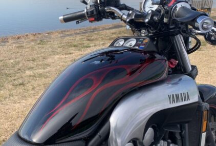 タンク、フロントフェンダー、リアフェンダーの3点にグラフィックが入っているのですが蛍光灯ぐらいの光量ではよくわからない仕様です。