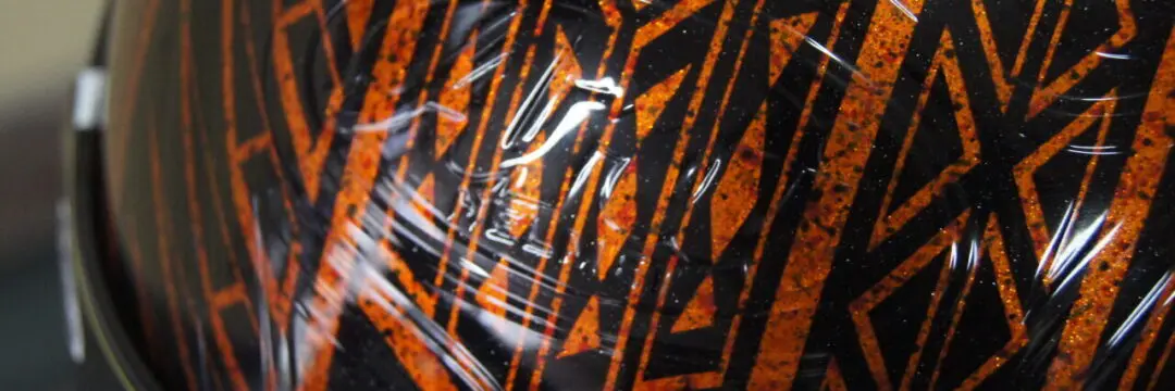 民族タトゥー柄をモチーフにカスタムペイントした四輪レーシングヘルメットです。