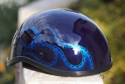 メタリックのスカイブルーがチャームポイントなヘルメットです。