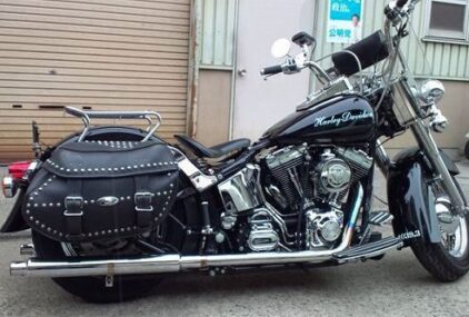 ソフテイルデラックスにファットボーイのフロントフェンダー、リアはファットボブにしオールペンです。