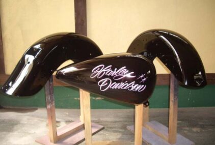 ハーレーダビッドソン ファットボーイにフレイムスをカスタムペイント。