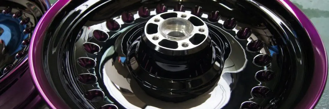 リムと穴の内側はアルミ地をポリッシュしキャンディパープル。