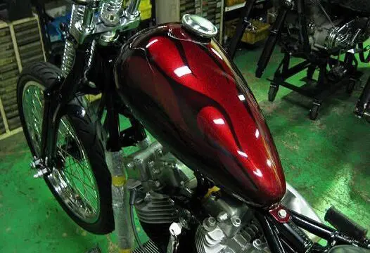 イメージのフレイムスはセンターキャップのタンクだったので、右キャップに合わせて左右非対称にしました。
