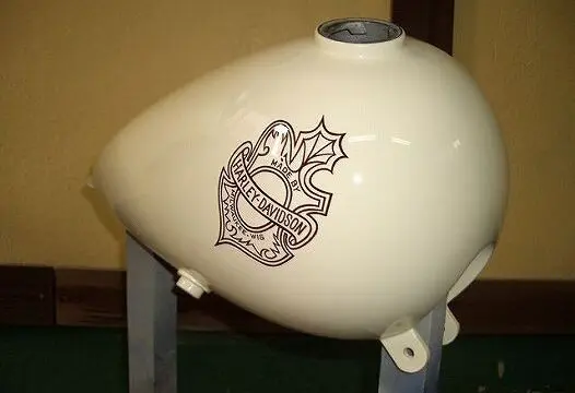 タンクに描かれたオークリーフはContinental pinstripingによる筆書きです。