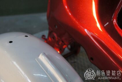 細かい目のメタリックで色付け、ムラになる様に点吹きしながらペイントしました。