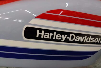 モンキータンクをキャンディフレークにマスキンググラフィック、それとエアブラシのロゴのコラボカスタムペイントです。