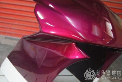 フロントフェンダー、フロントカウルのゼッケンプレートはブルーのラップペイント。
