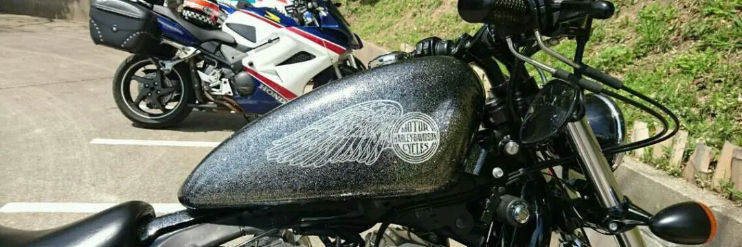 タンクサイドへはオーナー持ち込みのデカールを貼ってクリアーコート。