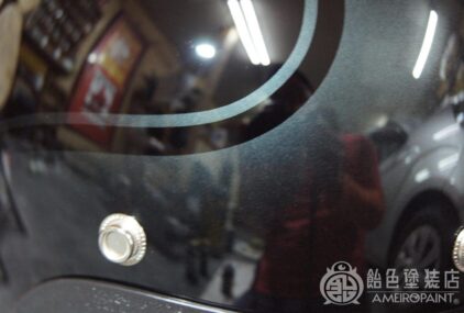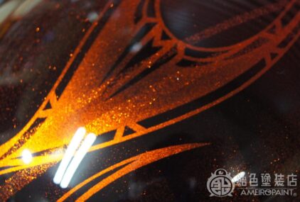 他の絡みも考えブラックベースにメタリックでボカシグラフィックにミニフレークで暗いトーンの黄緑にしました。