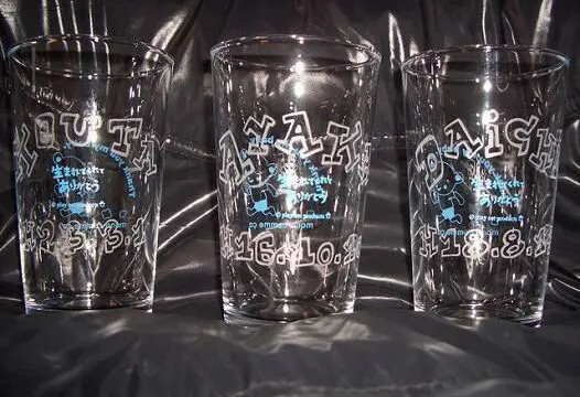 既製のプリント済グラスに、子供の名前と生年月日をサンドブラスト。