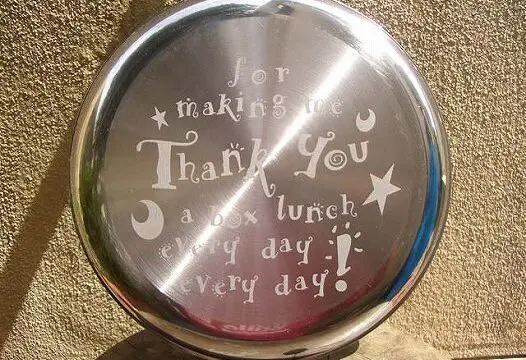 使っているうちに底面は削れて感謝の気持ちが無くなっていってしまうので、側面にもメッセージ。