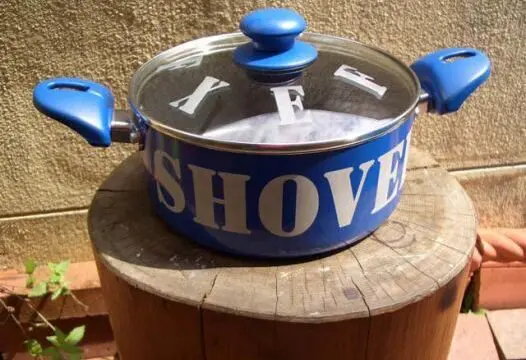鍋のサイドの塗装をサンドブラストで剥離し文字が入っています。