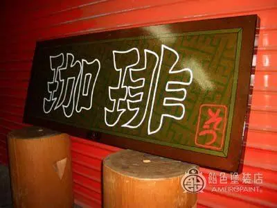全体像です。走っている車からわかりやすいように気を使って「珈琲」を白で筆入れ。