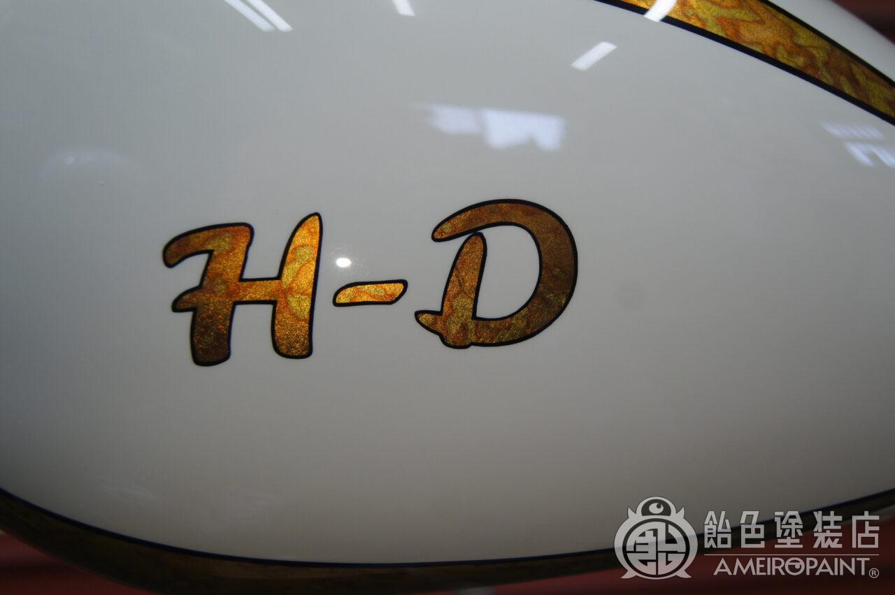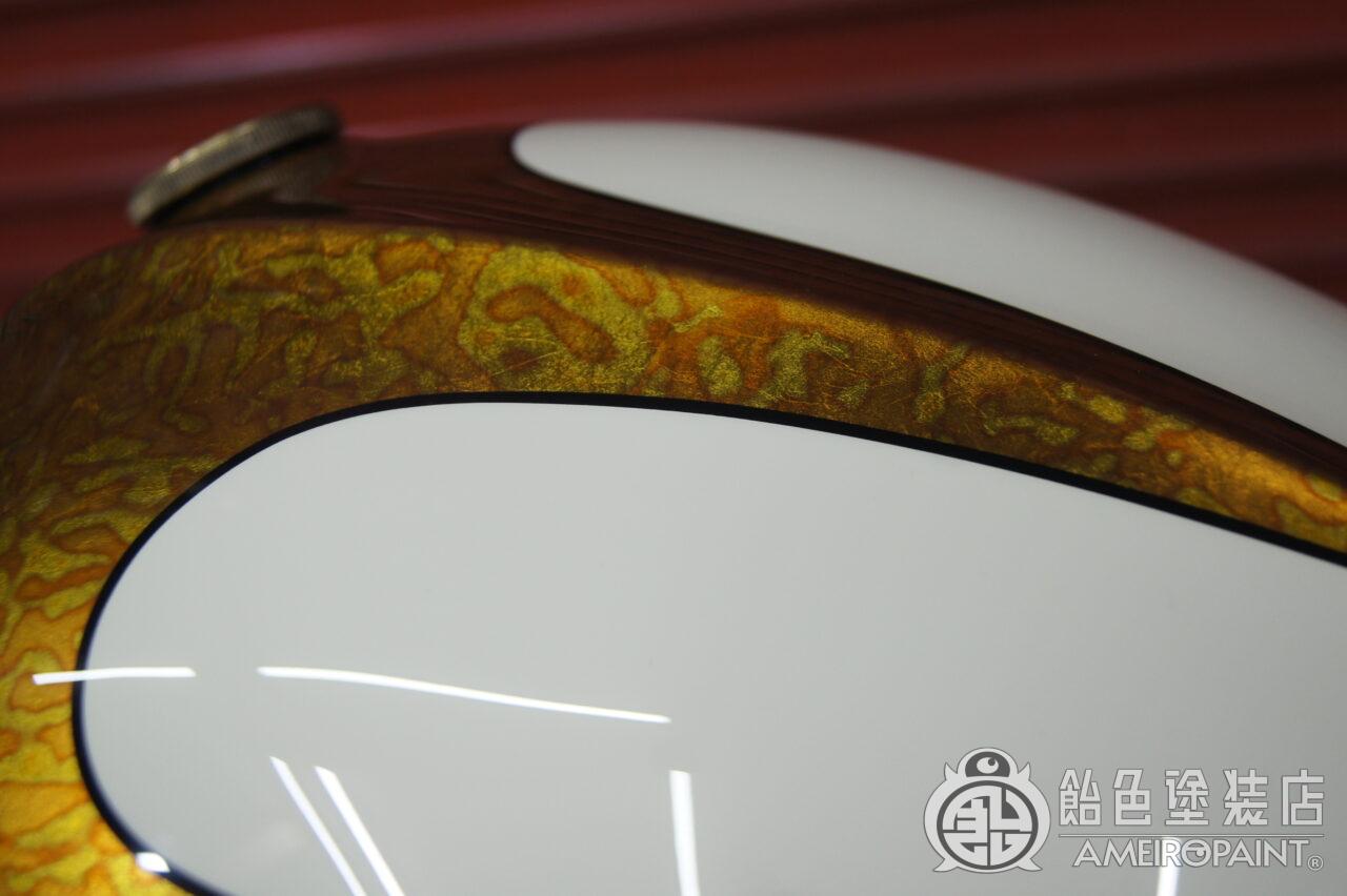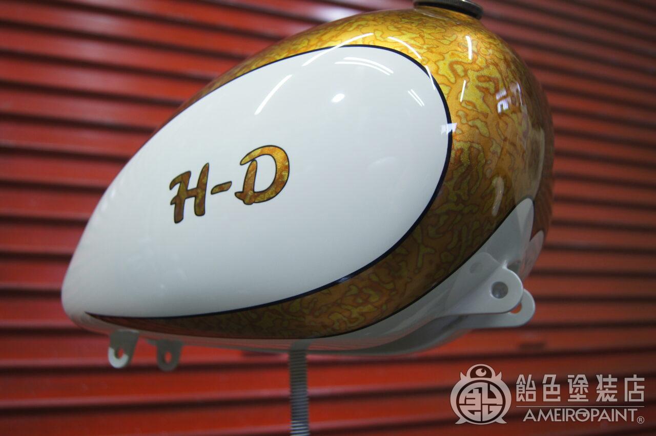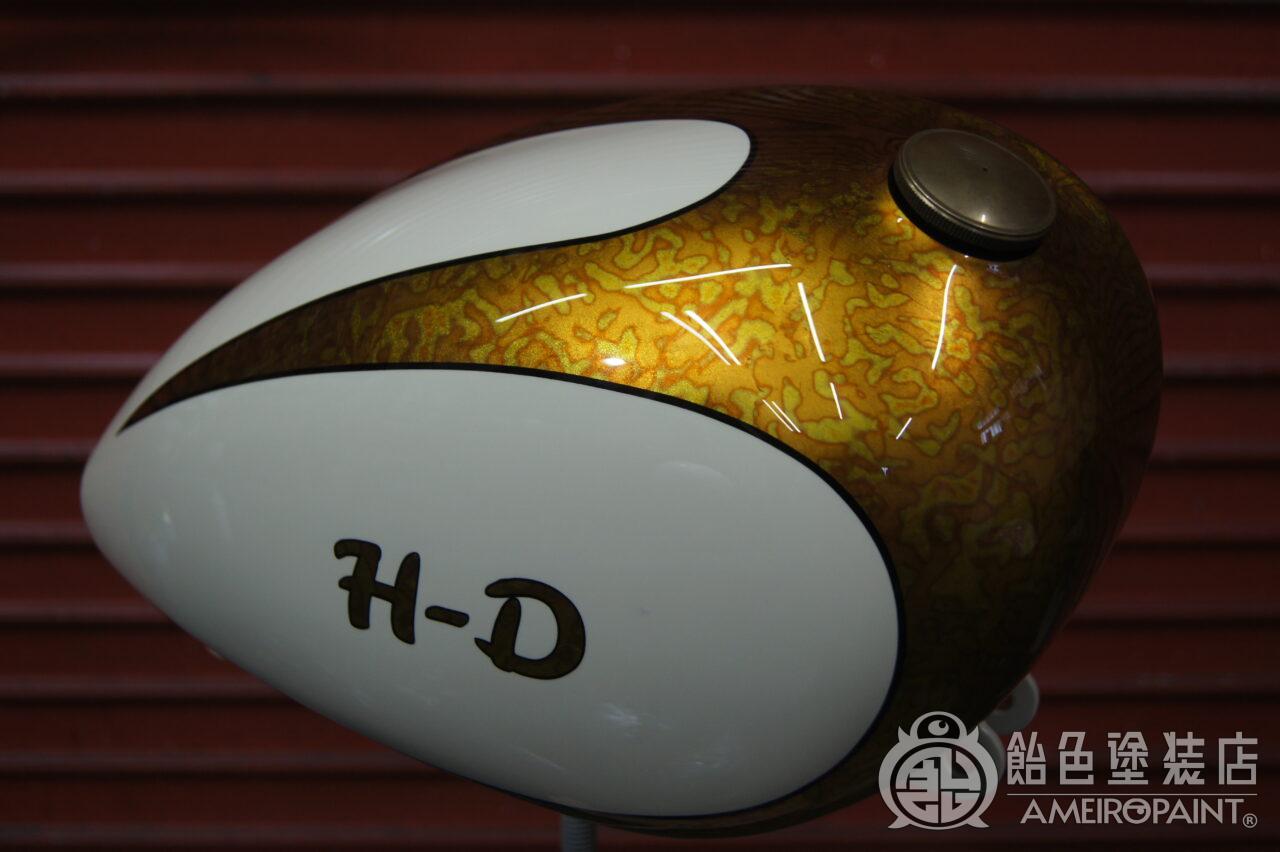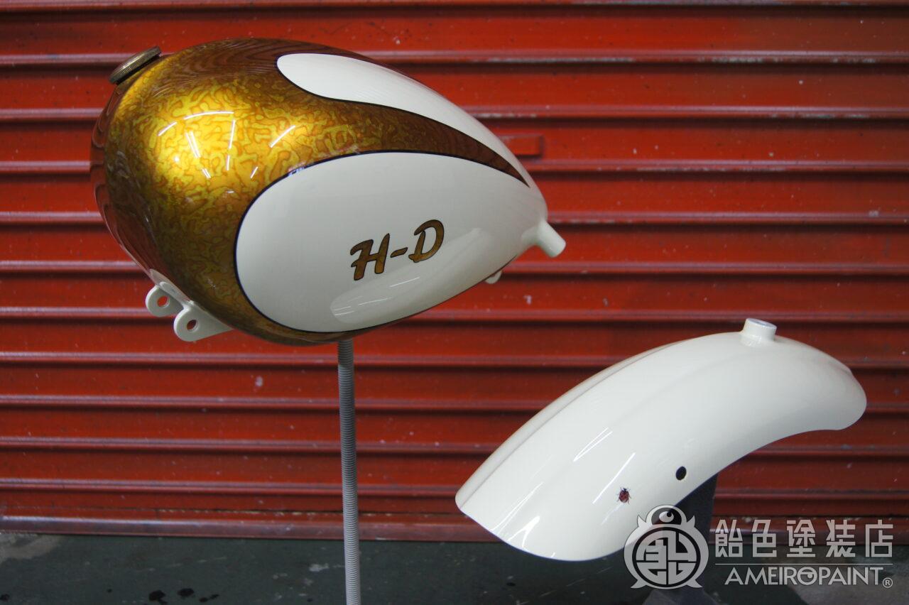 カスタムスポーツスターのタンクとリアフェンダーにカスタムペイントです。