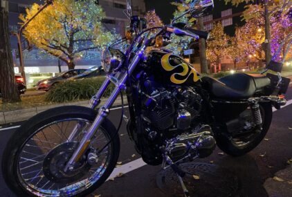 純正スポーツスタータンクをフォーティエイトスペシャルのレインボーカラーにカスタムペイントです。