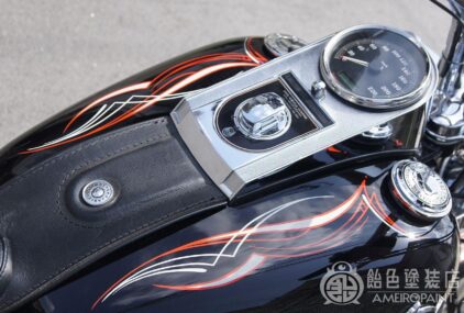 ハーレーロゴは粗目のメタリックを使用し、キャンディブラックを薄めに色付け。