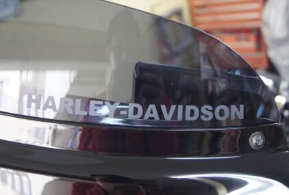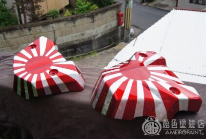 メタリックオレンジにホワイトで新郎新婦の名前。