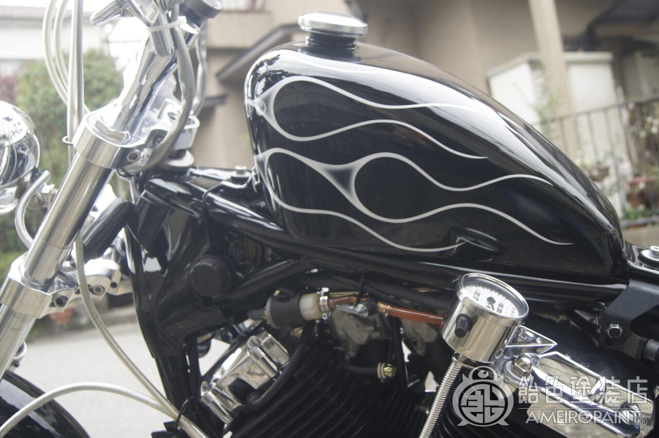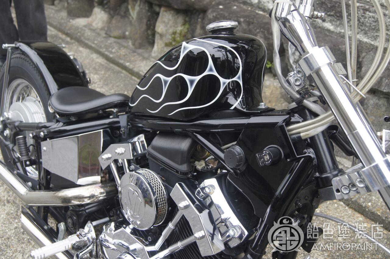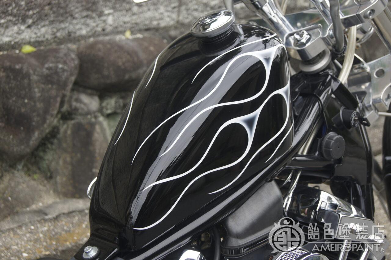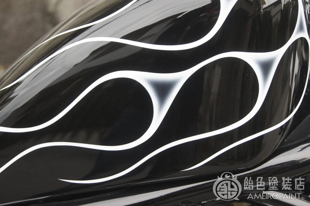 ドラッグスターのFRPタンクにフレイムス。 リアフェンダーは黒から黒にリフレッシュペイント。 ソリッドカラーのフレイムス。 細いデザインのフレイムスです。 左右非対称でデザインしました。 濁りホワイトでボカしています。 ステーの根本から生えてくるフレイムスになっています♪OWNERINOUEPAINTSolid-BlackSolid-WhitePAINT PROCESS カスタムペイント工程 ヤマハ ドラッグスター【細フレイムス】 painted by SATORU HATANO バイク ヤマハ フレイムス ブラック Share Post Pin It Hatena Pocket LINE