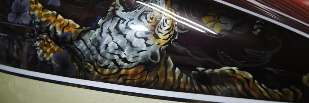 シャンパンゴールドとシルバーで茶玉ライン、ベースカラーは純正に習ってグリーンメタリックにキャンディバーガンディです。